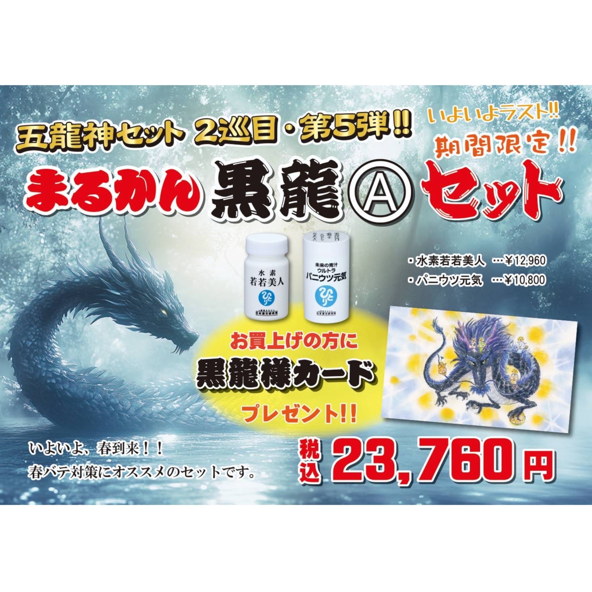 【黒龍Aセット】<水素若若美人×1><パニウツ元気×1> 【五龍神セット 2巡目・第5弾】黒龍様カード 五龍神台紙 プレゼント 柴村恵美子 大開運 期間限定
