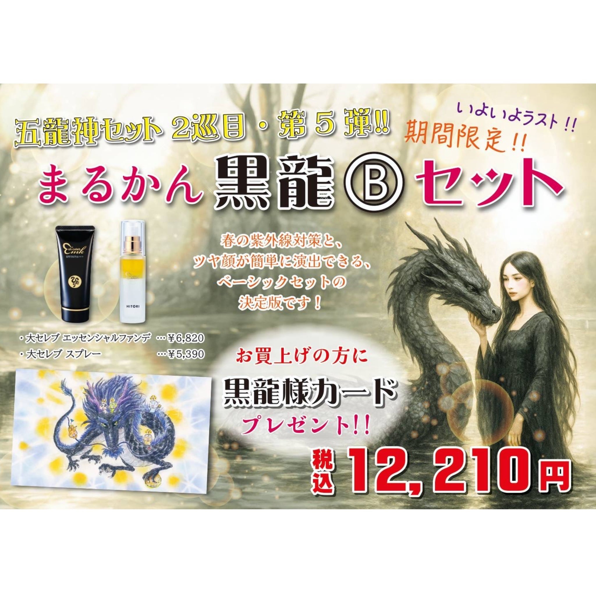 【黒龍Bセット】<大セレブスプレー×1><大セレブエッセンシャルファンデ×1> 【五龍神セット 2巡目・第5弾】黒龍様カード 五龍神台紙 プレゼント 柴村恵美子 大開運 期間限定